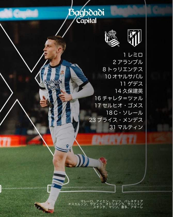 【速報】レアルソシエダ対アトレティコマドリー戦、久保建英スタメン喜多壱也ベンチ入り!